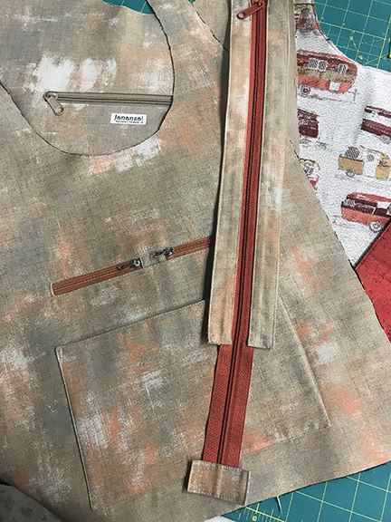Week 3 – Pockets inserted and zipper panels sewn, ready for insertion.