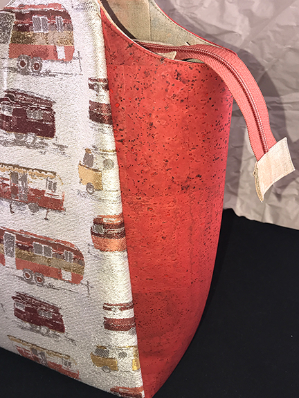 I had seen this cool travel trailer print on fabric.com and fell in love with it the moment I saw it, having no idea that she had designed it. The next time she brought me a stack of samples, there were the travel trailers, right on top of the stack. I swooned. I couldn’t wait to find the perfect bag pattern and cut into it.