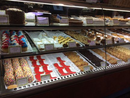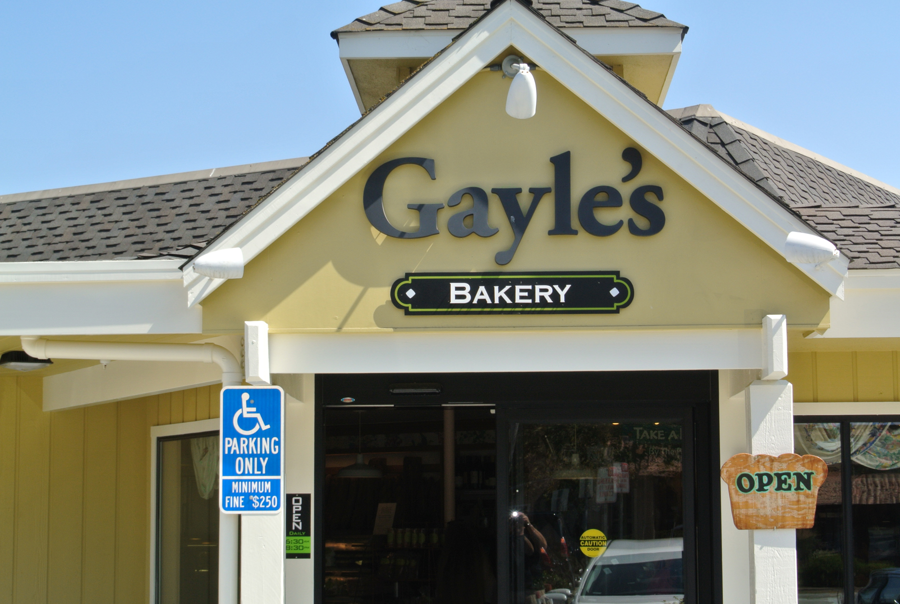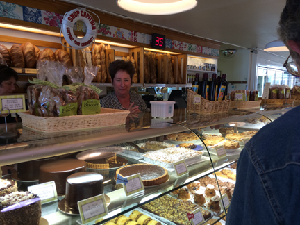 So off we went. Over the Golden Gate Bridge, southbound this time, with the passengers trying to catch pictures of the bridge through the car’s sunroof. Now here’s the thing about trying to get through San Francisco to points south along the Pacific Coast: there’s no direct route. There’s no interstate that just flies over all the neighborhoods without the driver’s having to stop for red lights. And the other fact is that sometimes GPS systems—Google Maps, Waze, and so on—take you on a circuitous route. So after a few wrong turns and a few stops to try to talk sense to my iPhone, we made it onto I-280 (Oh, excuse me. We made it onto “the 280”. Those left coast people have their own vocabulary.) After a couple of hours and a twisty, winding road to get through the mountains and down to Capitola, we turned into the parking lot outside the door of Gayle’s Bakery. And there, inside the door, was Gayle, waiting for me with a big hug.