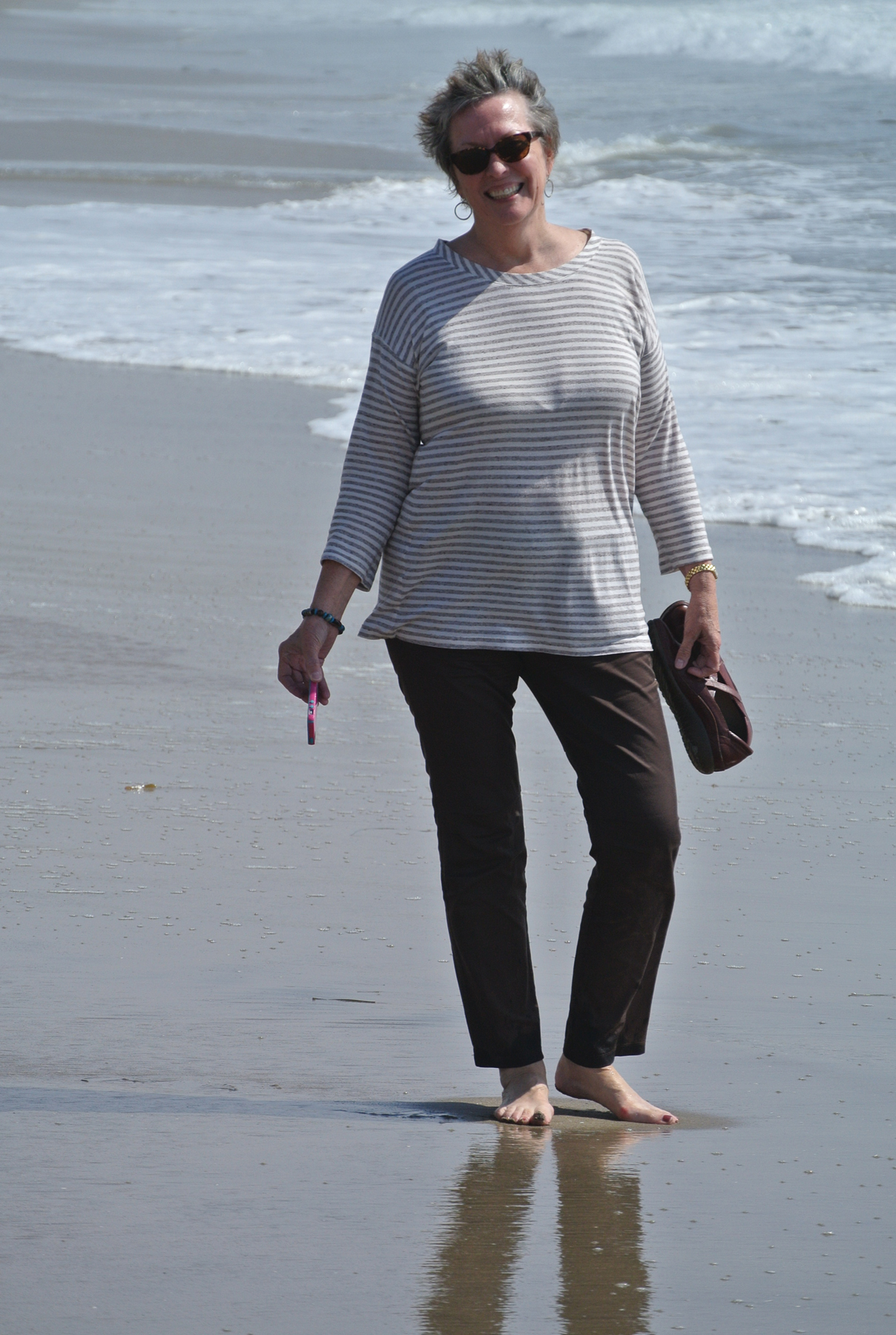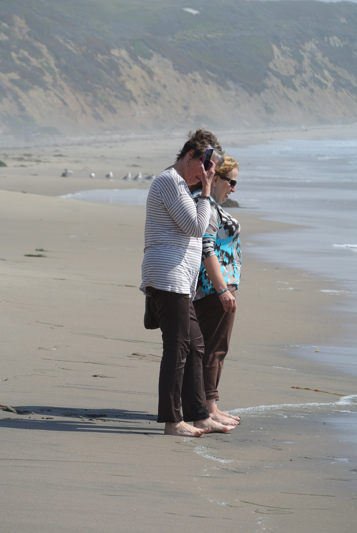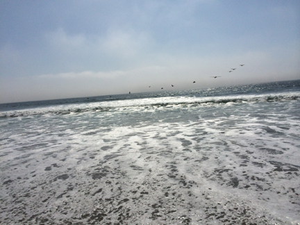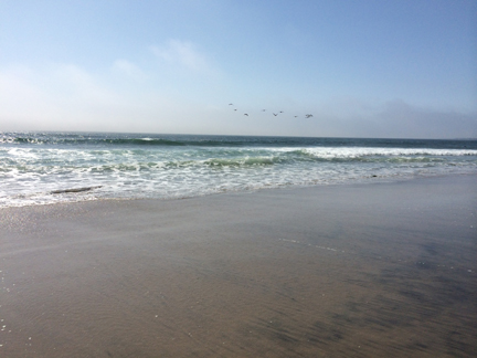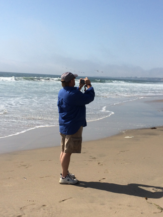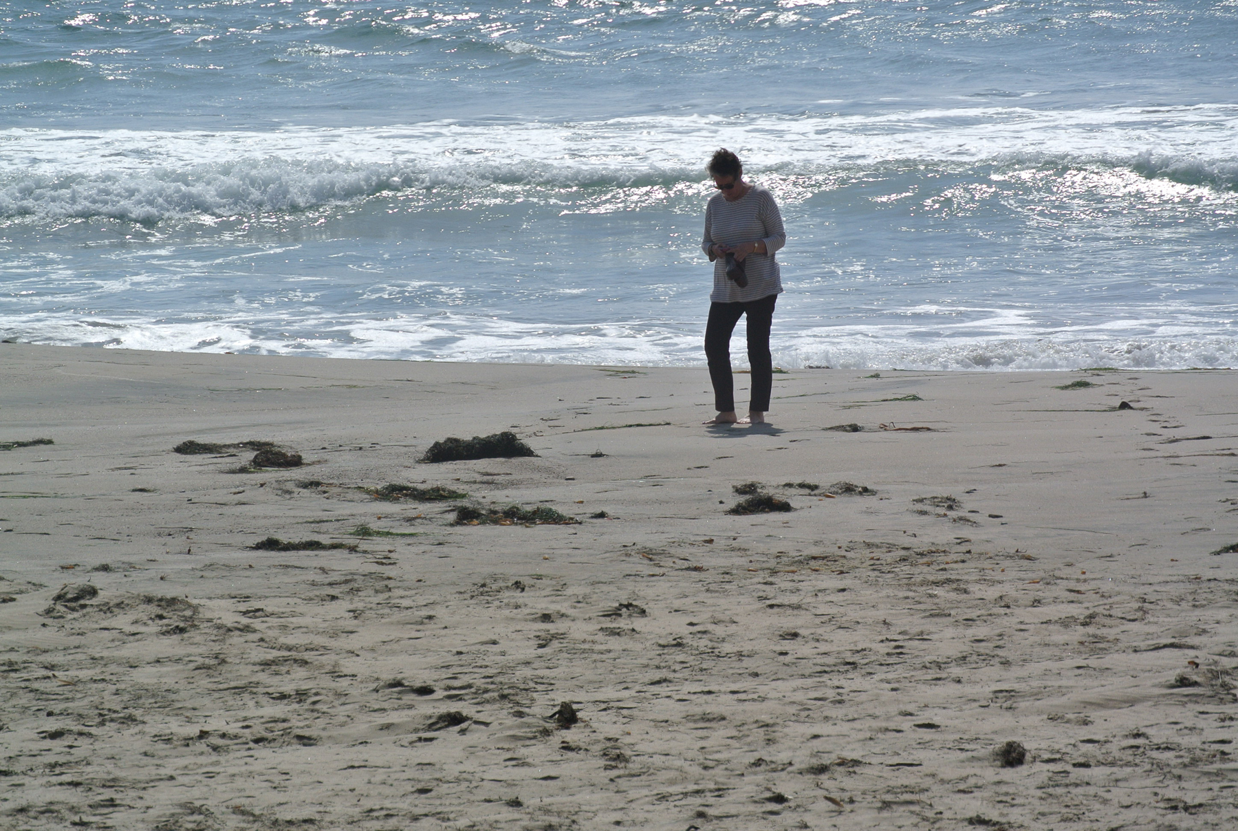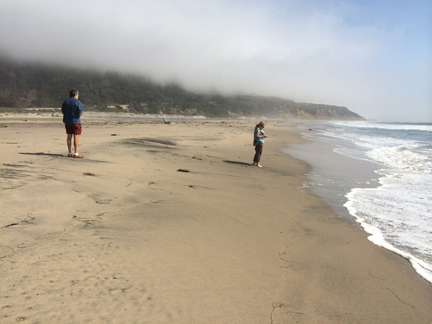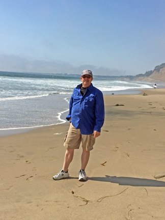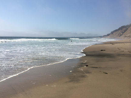 As I’ve said, this was Marilyn’s first trip to the West Coast, so I really wanted her to get the maximum joy out of that body of water. We drove down to the beachfront in Capitola, then headed up Route 1, along the coast, to the town of Half Moon Bay. As with my memories of Santa Cruz, I had also held on to lovely memories of Half Moon Bay from my IBM trip in the mid-80s. Midway between Capitola and Half Moon Bay, we took the opportunity to park the car and walk on the beach. Honestly, I was just thrilled to stand with the cold wavelets breaking over my toes. What joy.