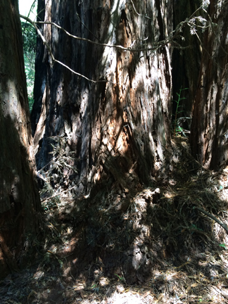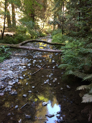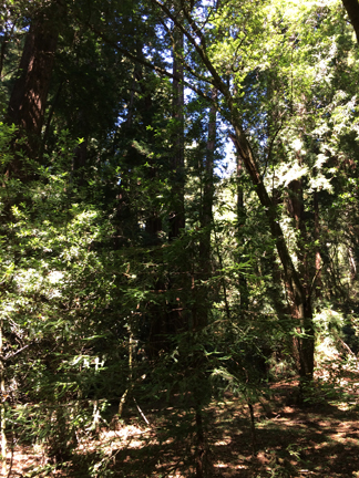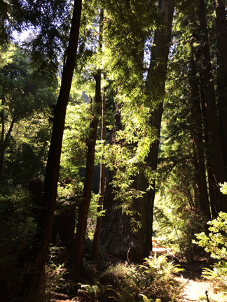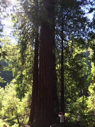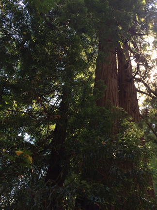 We drove into the darling little town of Mill Valley and had lunch at Sweetwater Music Hall and Cafe. The mushroom soup was to die for, and we each had a slider. A perfectly sized lunch—well, when you include the fabulous pastries that we tacked onto the end of the meal! Then we headed toward Muir Woods to walk among the redwoods. As we were leaving Mill Valley, the GPS kept telling me to take these tiny, windy roads that cross the mountain to get down to Route 1. I tried a mile on these roads, then gave up. Had I been in my Acura TL, I could have maneuvered those roads, but in a 7-passenger SUV? Not a chance!