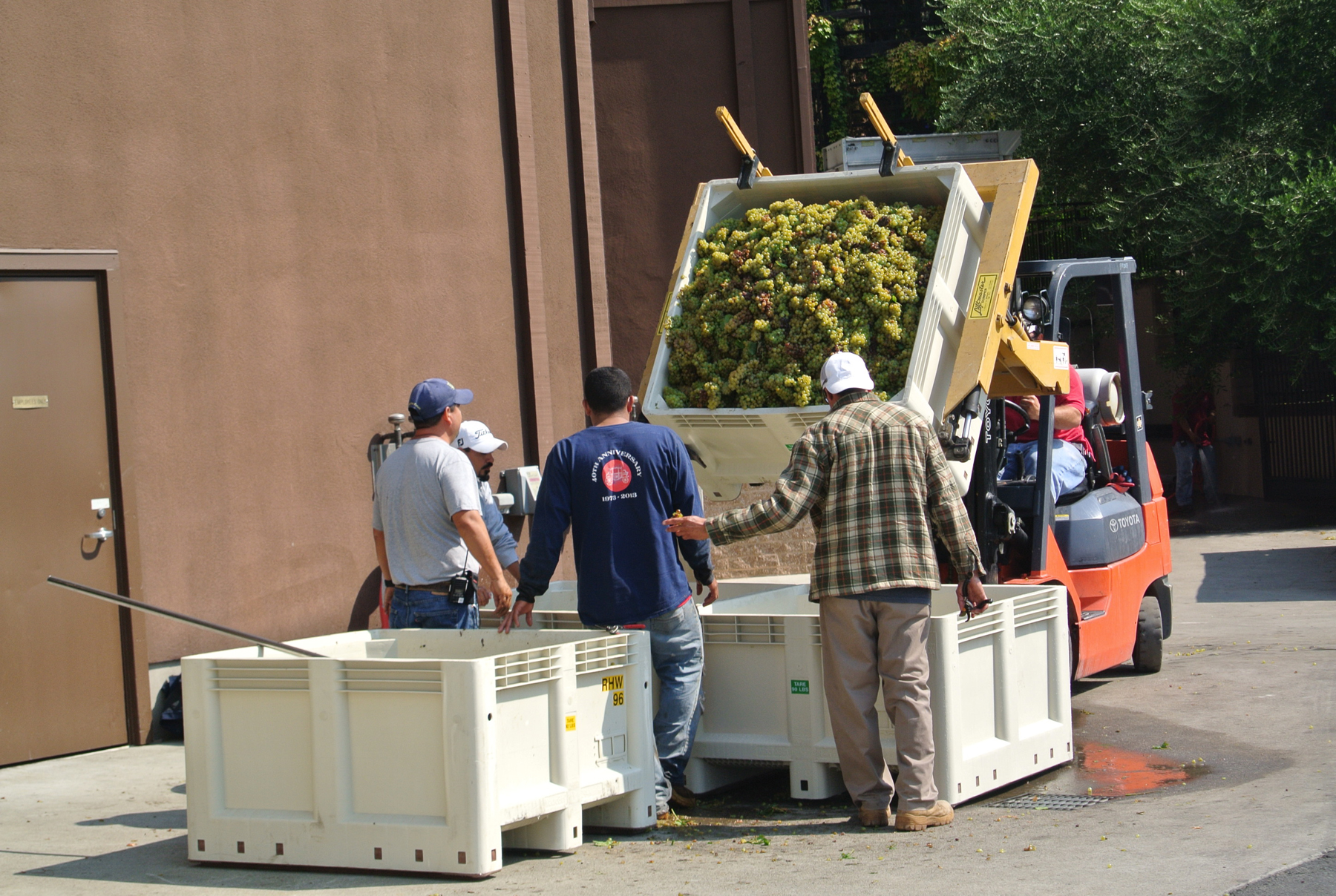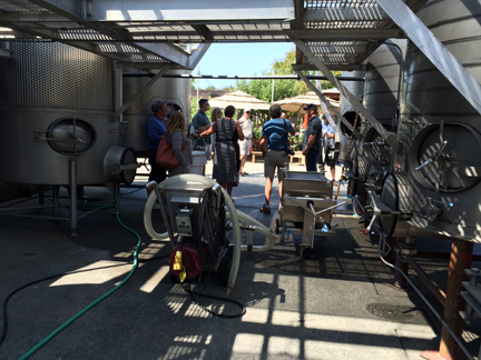 FFC’s grounds and operations in Geyserville are amazing! I highly recommend a visit there. Where we had viewed the wine caves at numerous other wineries, here we saw the bottling line. We watched empty bottles come onto the line from their case boxes, be inspected, filled (rate: 200 bottles per minute!; 24 hours per day!), have labels applied, corks inserted, be inspected once more, then gently dropped right back into case boxes and have the box glued shut. So organized, so clean, so well thought out.