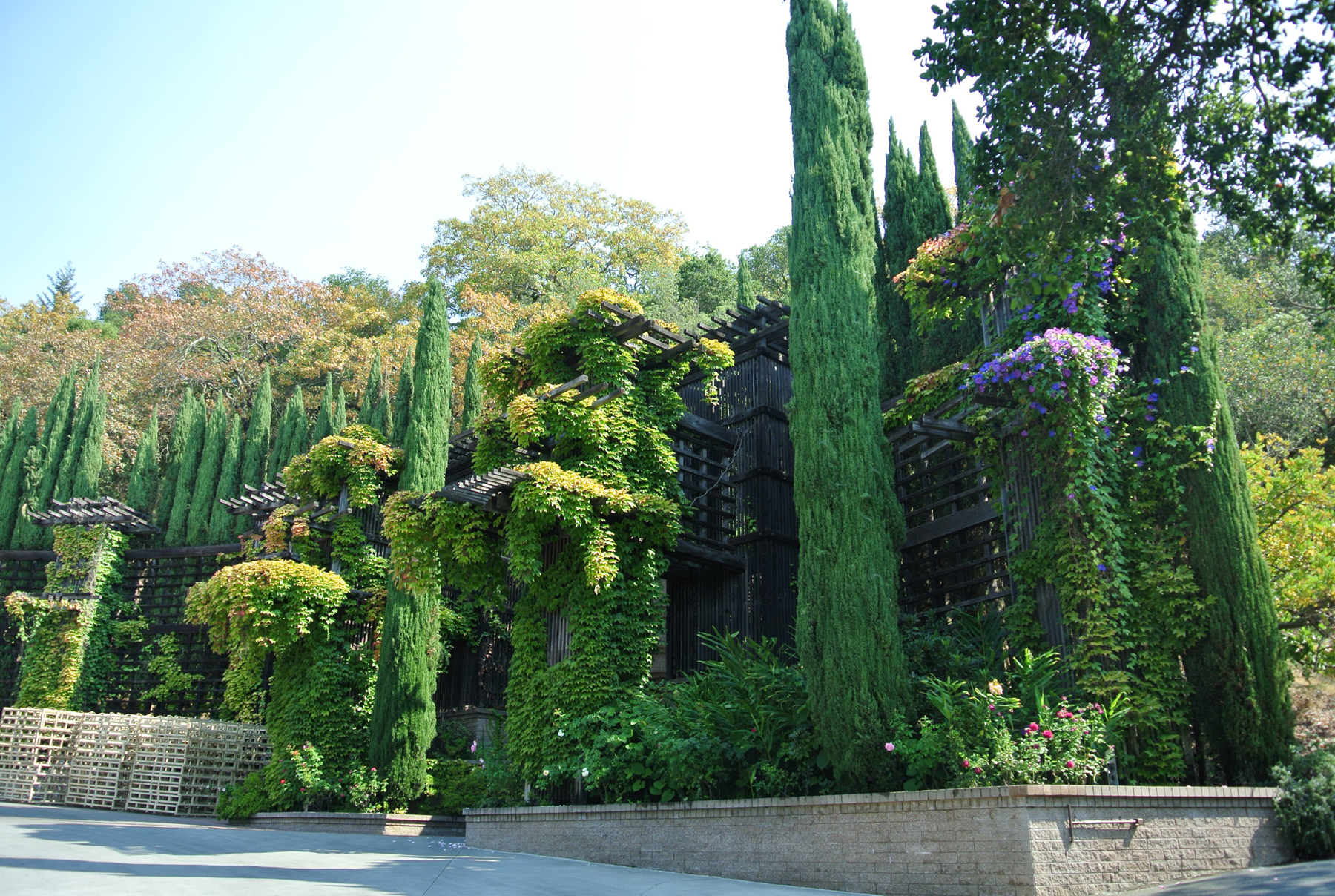 At Rutherford Hill in Rutherford, we stood at the top of the hill and enjoyed exquisite views, toured the caves, and snuck tastes of the grapes that were just coming in from being picked the night before. The entire facility was modern, beautiful, and all the gardens were absolutely lovely. It appeared to my novice eyes that no expense had been spared in this facility. (Yes, we bought two bottles of wine.)