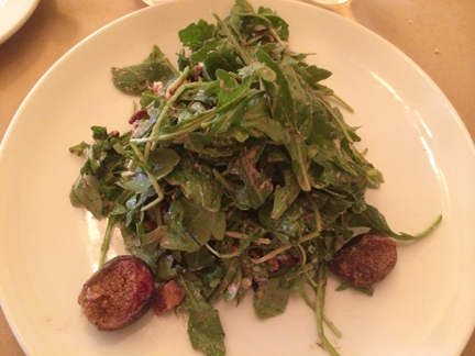 I had a dinner salad – fig and arugula. Marilyn had the fig appetizer, which she “aaahed” over. She had the croque monsieur for dinner, which looked fabulous. The guys had steak frites, which they pronounced very good. Great dinner choice, and we were out of the restaurant early enough to be back to Novato before dark.