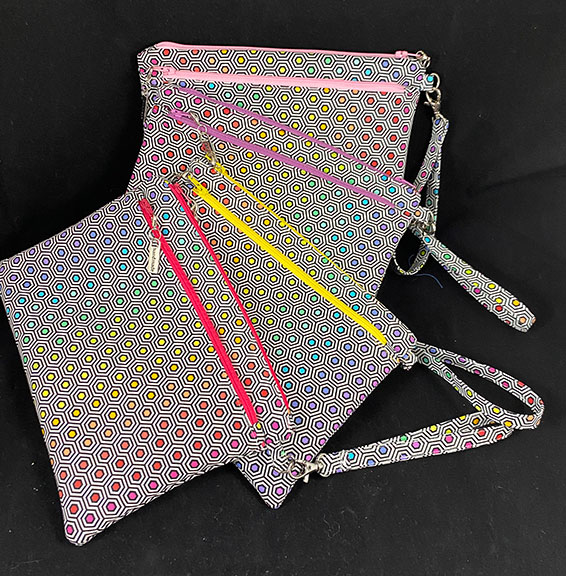 One day, a few days into December, I received a text from Becky, the mother of one of my favorite students, a young woman with a lovely voice and a friendly and loving nature. Becky asked if I could make four bags for her to give as Christmas gifts—one for my student, one for the student’s two grandmas, and one for her to keep for herself. I was in the middle of mask-making at that moment, so I pointed her to the page of fabric choices I had created for Miss C so Becky could shop my stash. Luckily for me, she loved the Metro Double Zip. (When made without that extra center snap pocket, it’s a very simple and quick sew. I would have no problem getting these done before Christmas.) She looked at the photo of Tula Pink’s at-that-time latest collection, Linework, and was drawn to the Hexy fabric. I had the Hexy in color “Ink.” She looked at the little hexagons and decided she wanted each bag to have a different color lining, matched to one of hexagons. She requested purple, yellow, light green, and pink. I searched Tula Pink’s fabrics online and found her “Mineral” design. I was able to order a bundle (a half yard of each color in the line) from an Etsy shop and chose four colors to use for linings. I placed a big order from my favorite zipper store, ZipIt on Etsy. (Zippers purchased in bulk from an Etsy shop usually means a 75% savings over walking into JoAnn Fabrics for your zippers. Just a tip.) I was able to finish the pouches and deliver them on the day before Christmas Eve. A week later, I received a text from my student, thanking me for making the bag for her and saying she’d think of me each time she used it. ❤️ Finished December 23.